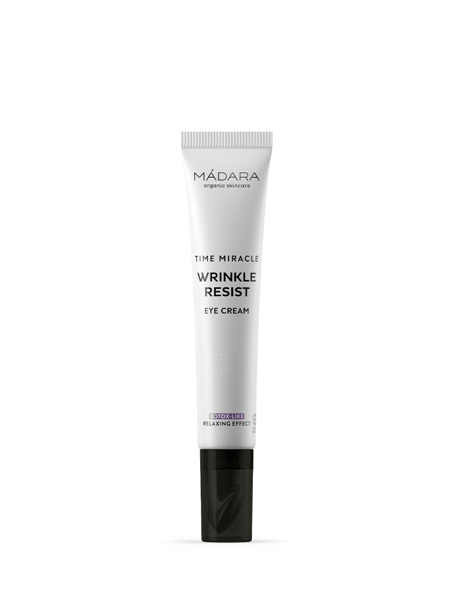 De MÁDARA TIME MIRACLE Eye Cream is een biologisch gecertificeerde oogcrème uit Letland die inspeelt op de kracht van noordse plantaardige extracten. Met ingrediënten als berkensap, hyaluronzuur en een gepatenteerd CELL REPAIR BIO-COMPLEX richt deze crème zich op het verminderen van fijne lijntjes, wallen en donkere kringen rondom de ogen.