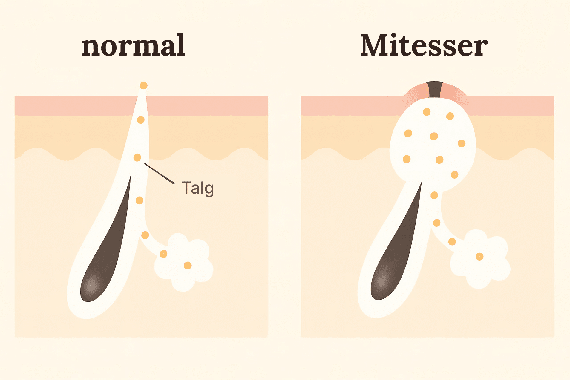Die Poren werden weiter und können die überschüssige Talgmenge nicht mehr effektiv abtransportieren.